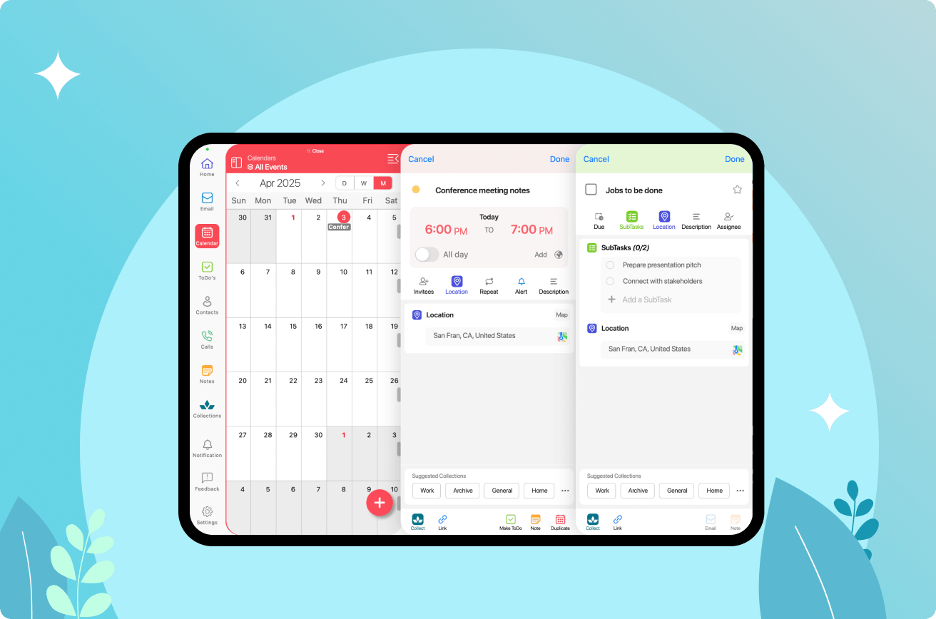 We brought calendar, tasks, notes, and contacts into a single, touch-based workspace designed specifically for the iPad.
